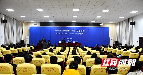 3月13日上午,京东无人机(湘潭)飞行服务中心签约仪式在湖南理工职业技术学院举行,双方将共建学校无人机应用技术专业,为企业培养更多高素质、高技能的应用型人才。湘潭市委副书记、代市长张迎春见证签约并讲话。副市长傅军,京东云副总裁李永明,湖南理工职院党委书记叶星成、校长陈静彬等出席仪式。