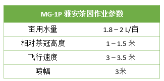 对于茶叶的飞防作业,胡延鑫和钱鹏摸索出一套标准化流程。针对MG系列,他们更换了TT11001喷头,目的是促进内吸性药物的药效发挥;作业前结合PC GS PRO进行地块规划;作业时亩用水量1.8-2L/亩,相对茶冠高度1米-1.5米,飞行速度为3-3.5m/s。在实践出可靠的作业参数后,胡延鑫和钱鹏也梳理了一套系统的飞防服务流程。
