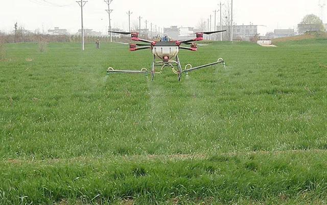俗话说:到了惊蛰节,耕地不能歇。3月13日,颍上县江店孜镇的连片麦田上空,几台无人机正在进行防治红蜘蛛、纹枯病等病虫害的喷洒作业。在技术人员的操作下,无人机呼啸着从一大片绿油油的麦田上飞过,尾部洒下雾化的白色药液。随着飞手在智能手机上发出不同指令,无人机开始按照既定路线循环作业,继而平稳地转向下一个作业区域。