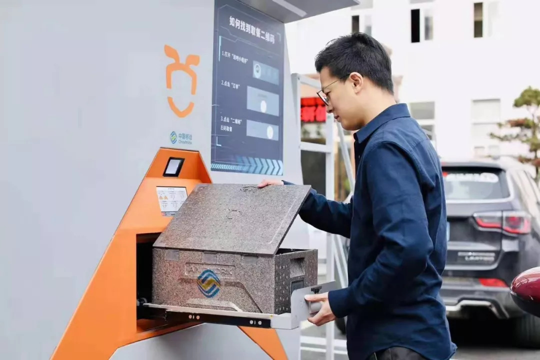 通过扫一扫由浙江移动和浙江省5G产业联盟成员——杭州迅蚁网络科技有限公司共同打造的“5G无人机物流配送”自取站上的二维码,便进入到“迅蚁送吧”的APP上,直接预订一个肯德基订单。而在距离两公里外的肯德基店内,工作人员接到订单后,把打包好的快餐包裹即刻放入了停放在外卖自取站的“5G无人机”的肚子里,选择取货地点;确认后,无人机自动起飞,飞向指定地点;最后,精准降落在自助取货站的停机坪上,自取站的升降装置将无人机上的货物送到取货窗口。前后不出10分钟,无人机就飞到了你面前,再次扫码,便可以取出热气腾腾的咖啡与鸡翅。