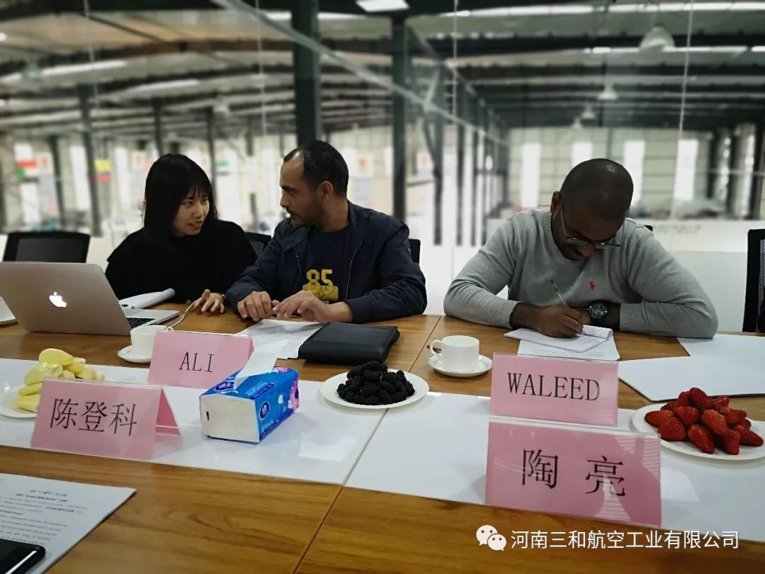 2019年3月19日,河南三和航空工业有限公司迎来了阿联酋空军上校ALI、工程师WALEED的来访,一同参观考察了我公司的产品总装线和生产车间,并就公司产品提出了采购需求。