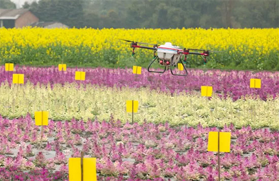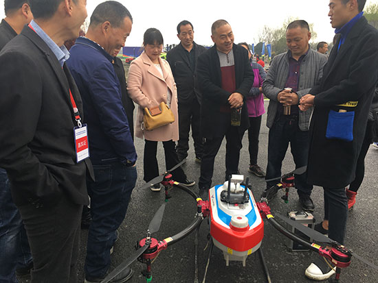 在示范基地,天鹰兄弟技术员加满药箱装好智能电池后,“啪啪啪”按了几下遥控器,这台载重12公斤的喷药无人机就嗡嗡地在田间来回飞行,对着农作物喷洒雾液......“过去十亩地需要1个人花1天才能喷完,但现在用植保无人机1架飞机10分钟就能喷完,一天能喷300亩”,现场天鹰兄弟技术人员介绍,这种无人机效率高、节药节水,比人工喷洒效率高30倍、节药30%、节水90%、防治效果提高20%。