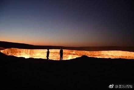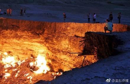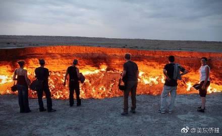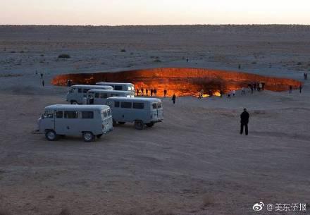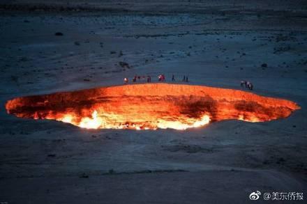 达瓦札天然气燃烧坑直径69米,深度30米,坑内温度可达1000摄氏度。该燃烧坑形成于1971年,已燃烧48年之久。当时苏联在沙漠上大量钻探天然气,错误的计算导致了钻井平台倒塌。周围无法居住了,而燃尽危险气体是最佳处理方法。然而事不遂人愿,气体燃不尽。