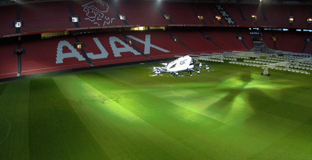 亿航智能联合荷兰皇家电信KPN在阿姆斯特丹球场进行亿航载人级自动驾驶飞行器联网飞行演示。