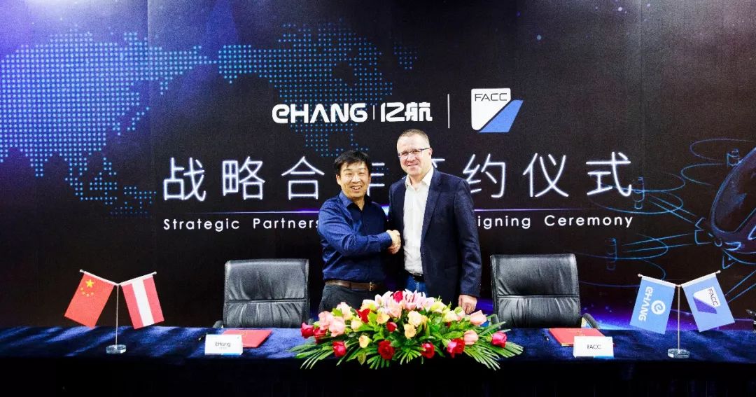 亿航智能与全球领先的奥地利航空集团FACC签署了战略合作协议,双方将携手围绕亿航自动驾驶飞行器(AAV)展开进一步产品优化和量产合作,共同推行智慧城市空中立体交通解决方案。