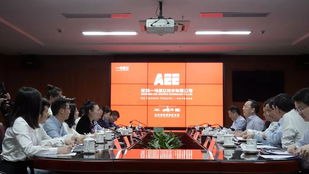 上午,在AEE一电航空高层领导张叶董事的陪同下,来访一行实地参观体验了AEE一电航空的产品及观看了飞行演示,并就双方合作项目开展座谈会,深入洽谈合作进程。