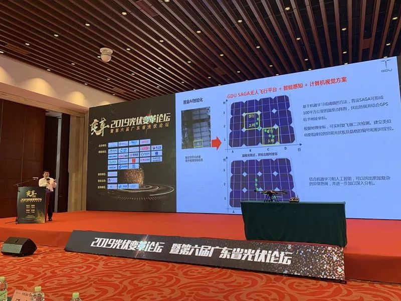 作为行业风向标品牌论坛,广东省光伏论坛在2019年将迎来第六个年头。在今年刚刚结束的“竞价时代,看制造技术变革方向”的论坛主题下,普宙作为唯一的无人机企业受邀参与,并做《无人机热成像助力光伏电站精细化运维方案》主题演讲,引领光伏行业积极思考智能化行业无人机可以赋予行业的能效化、成本化价值。