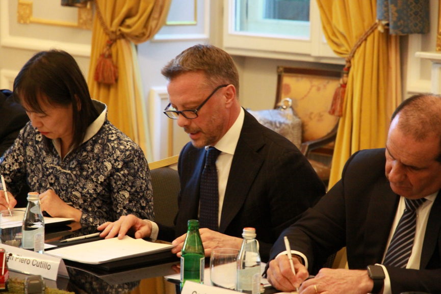 On March 22 (local time), BAIC Group's Secretary of the Party Committee and Chairman Xu Heyi, BAIC’ s Member of the Standing Party Committee and Vice PresidentCai Suping,Director of Strategy Planning and Chairman of BGACWei Gang, and Deputy Secretary of the Party Committee and Vice President of BGACLi Ruiyihad a high-level conference with Carlo Formosa, President of International Relations, Gian Piero Cutillo, Chief Strategy & Innovation Officer, and Carlo Gualdaroni, Chief Commercial Officer.