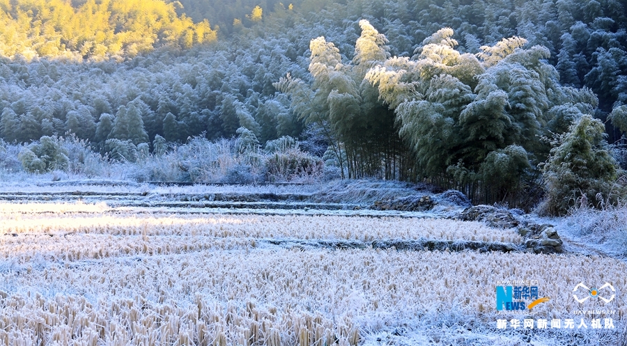 冬天来临,吕田的田间地头,蒙上了一层薄薄的冰霜。