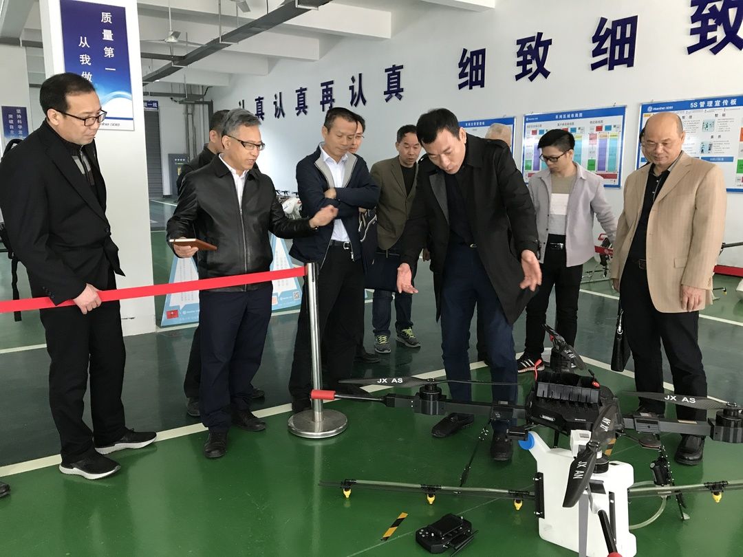 领导们参观了企业展厅、汉和云后台管理系统、生产装备线、检测中心,并在试飞场实地观看了汉和金星二号和水星一号的试飞,以及地面智能喷洒设备的演示。