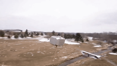 简单来说,这就是以雷神之锤面貌呈现的无人飞行器,在飞手的控制之下,它可以在空中自由移动,甚至「翻筋斗」、撞倒迭起的障碍物,最后飞回雷神的手中,但就做不到电影中协助雷神飞行的功能。这已够厉害了!