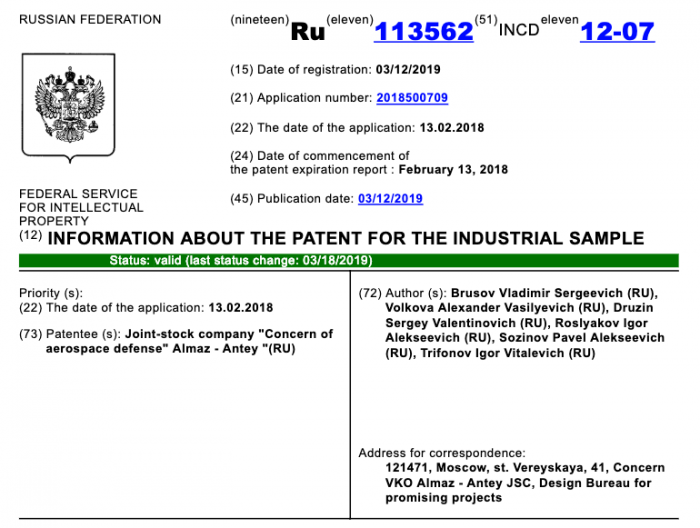 根据俄罗斯联邦知识产权局3月12日公示的信息,批准了一种机舱内嵌有霰弹枪的无人机。援引当地媒体C4ISRNET报道,这种新型无人拦截航天器是一种“尾坐无人机”(tail-sitting drone),被归纳为Vertical Take-Off and Landing类型,意味着可以垂直升降并水平飞行。它的翼展达到10英尺,重量约为50磅,取决于天气条件最高可以飞行40分钟。