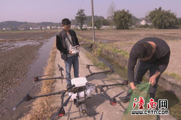 水稻直播技术又有了新突破,3月29日,重庆市在梓潼街道新生村开展的首次无人机水稻直播作业,3分钟就能播完一亩地。记者在新生村水稻新型直播技术示范基地看到,无人机正按照预设航线,来回进行播种作业。技术人员告诉记者,为了种子更均匀地播散到田里,无人机飞行高度应控制在4米左右,宽幅为3.5米。