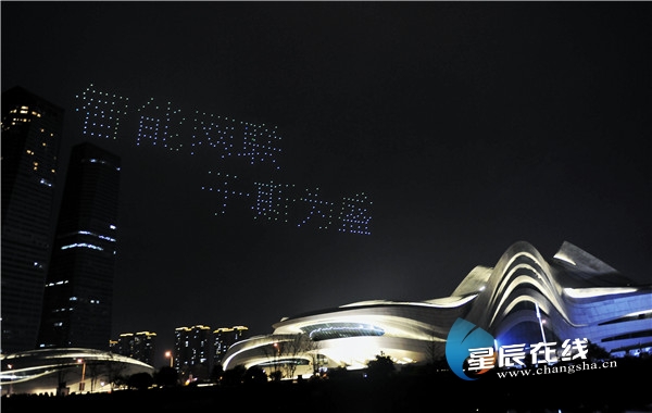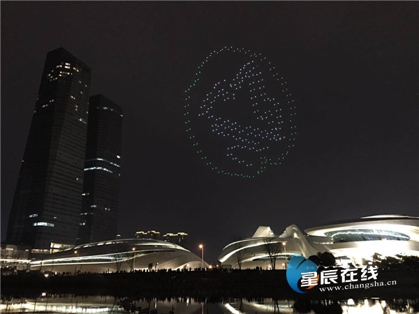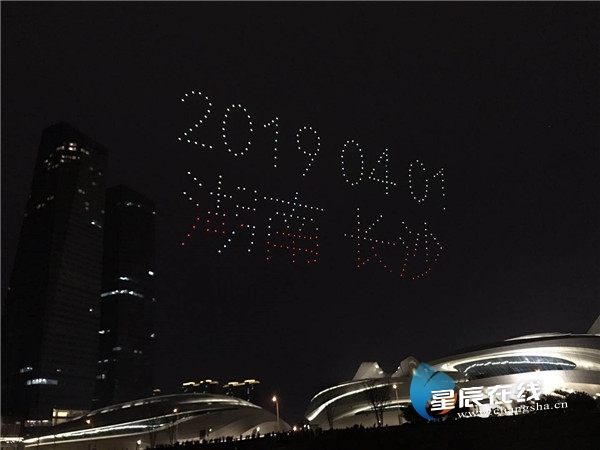 冬有乌镇,春有岳麓。4月1日至3日,2019互联网岳麓峰会在长沙举行。4月1日晚,300余架无人机腾空而起,燃爆湖南湘江新区梅溪湖夜空。