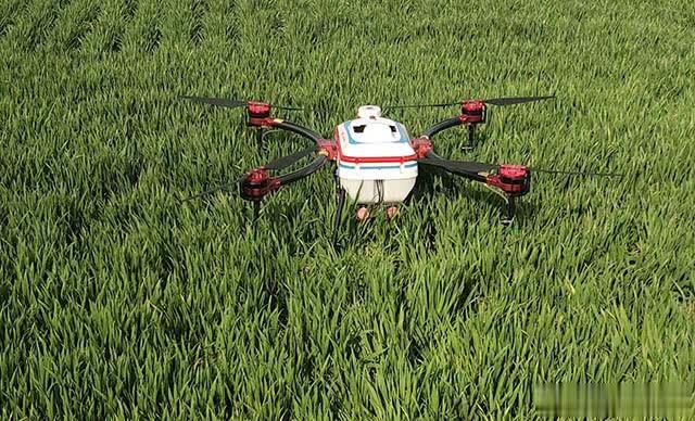 在绿油油的麦田,天鹰兄弟技术员按了几下遥控器,一天载重12公斤的植保无人机就嗡嗡地在麦田上空来回飞行喷洒雾液。据介绍,这台植保无人机操作非常简便,通过手机设置预定的航线及飞行参数就能起飞打药,一台无人机一天能喷300亩,喷雾效果好,节药30%、节水90%、防治效果提高20%,降低了生产成本,而且空中施药不压苗不损坏作物。