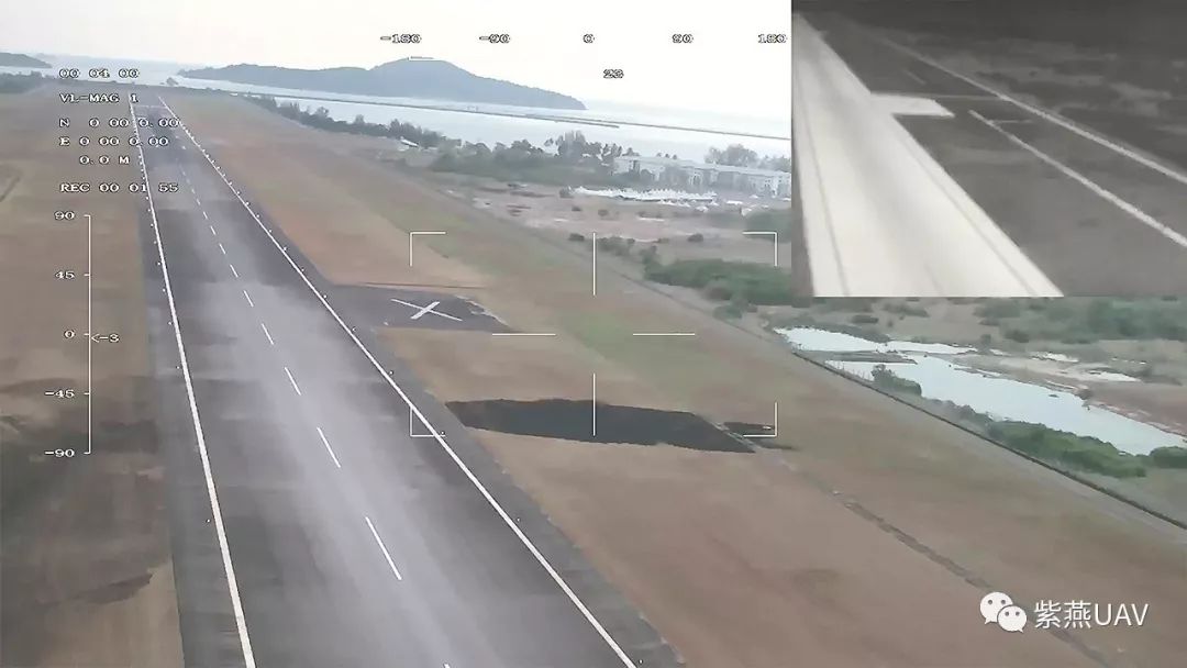 紫燕河豚A2无人直升机受军方邀请检查跑道,过火面积评估(黑色部分),飞行演示得以顺利进行。