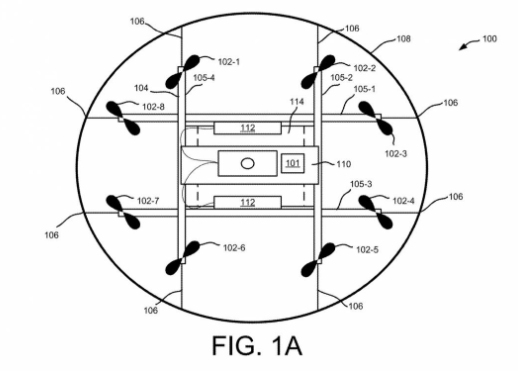 因此,其“ 带有充气膜的无人驾驶飞行器 ”将在机舱内部隐藏一个气球。这可以使用压缩气体通过在无人机上携带的气罐或腔室进行充气。当无人机漫游到需要削减噪音水平的区域时 - 例如亚马逊建议的交付地点 - 气球可以充气。