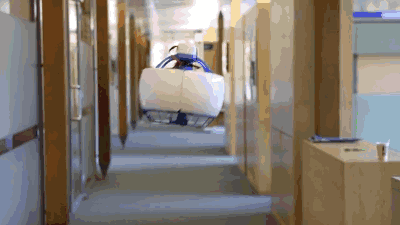 如果遇到不看路专心玩手机的路人,它也会主动避让,比人还灵活机警。Fleye的小身子只有一斤重,只有25CM的长度,一个人单手就可以轻松的托起来。里面装的是锂电池,1500毫安可以达到每小时20公里的速度。