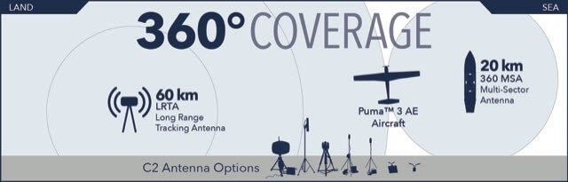 新型360 MSA配有24个高增益自动选择集成天线阵列,可分析下行链路数据质量,并在贴片天线之间自动切换,可在20公里范围内提供360°不间断的通信能力。指挥官(CO)可以使用360 MSA保持对Puma AE飞机和有效载荷的完全控制,并实时访问ISR信息。此外,它还能够为舰桥和战斗小队提供任务规划,返回实时移动地图,高分辨率图像和交战状态。