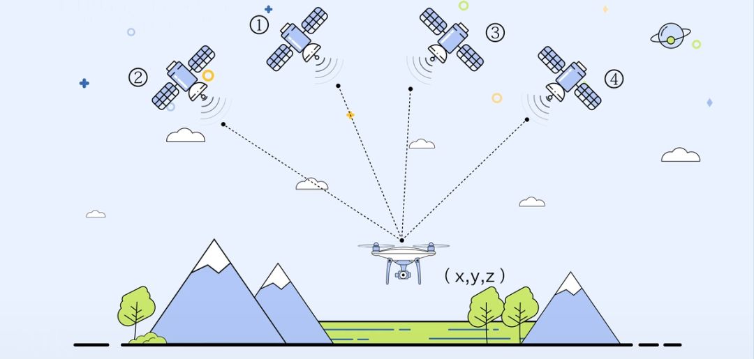 在认识 RTK 定位技术之前,我们需要先了解卫星定位技术,又称 GNSS(GlobalNavigation Satellite System)技术。该技术通过测量出已知位置的卫星到用户接收机之间的距离,综合多颗卫星数据,从而运算出接收机的具体位置。因为需要计算三维位置及偏差,所以需要至少 4 颗卫星。