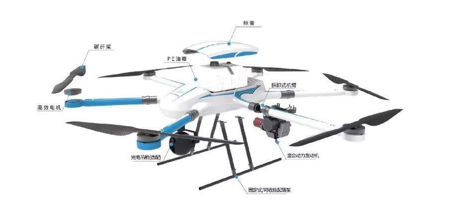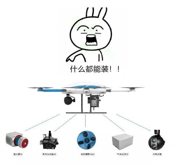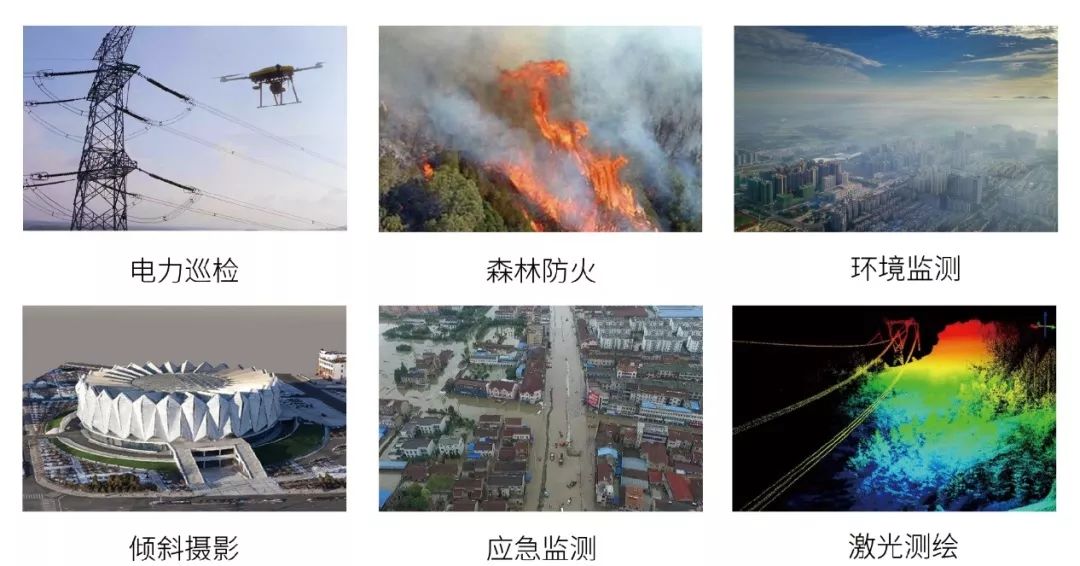 HC-332于设计之初就计划成为一款通用的飞行平台,可搭载光电吊舱、激光雷达、多光谱相机、气体检测仪、倾斜摄影相机、紫外成像仪等多种机载设备,可广泛应用于农林监测、物资投递、大气监测、电力巡检、石油天然气巡检、铁路巡检、安防侦查、国土测绘、环境监测、空中摄影等等多种领域。