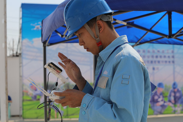 “输电所代表队准备完毕,请求起飞”,在参赛选手铿锵有力的请示汇报中,3月27日早,团体科目赛多旋翼无人机(“∞”字飞行)竞赛及个人科目无人机多点悬停正式开始,“嗡嗡”的轰鸣声响起,无人机在操作员手中如同一个上下翻飞的精灵,灵活的手指在遥控器上准确地把控着无人机的每一次前进、后退、旋转,充分展示了无人机巡检人员高超的操作水平。
