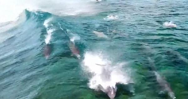 肖恩把这段令人惊叹的视频发布到Instagram上,目前浏览量已经超过了15万。他在Instagram上写道,“这是2019年4月的一个阳光明媚的秋天,在一个美丽的冲浪休息日,一群海豚出现,向水中的冲浪者展示它们的冲浪技能!它们的表演真精彩!这是迄今为止我最喜欢的画面!”