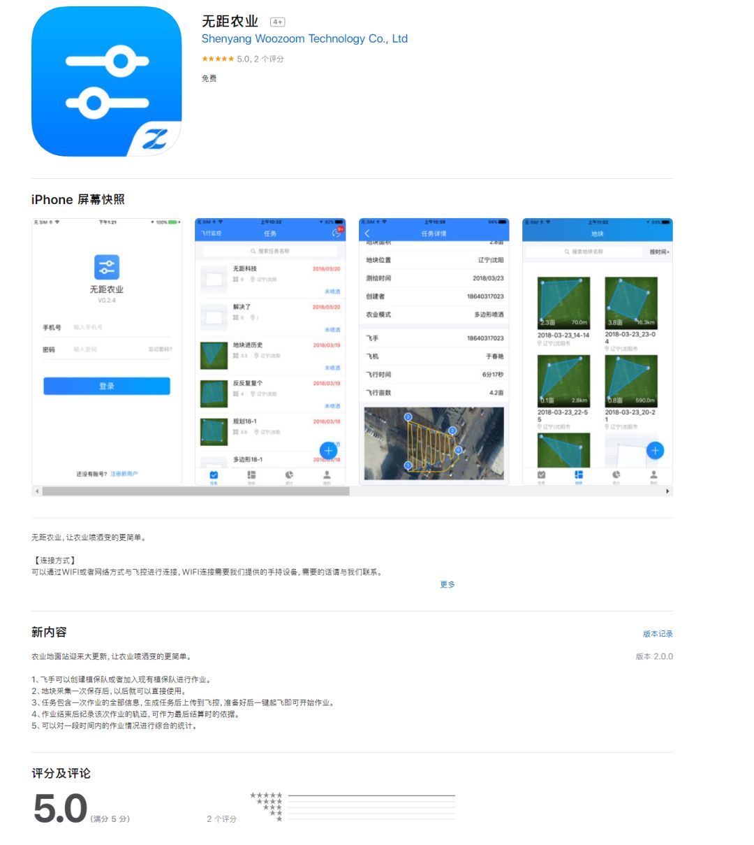 无距农业APP作为一款面向无人机植保行业的管理平台,为农业植保用户提供无人机植保作业管理解决方案。通过手机一站式操作,实现飞行作业监控、农药喷洒控制、飞行任务管理、农业地块管理、农业作业数据统计及植保队管理等功能。