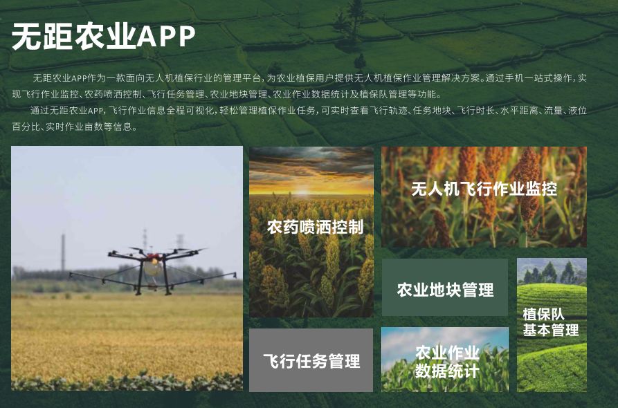 无距农业,深耕农业领域,立足农业,服务植保,以效益创造农业未来,致力于为市场提供高效的植保无人机解决方案,成为您身边值得信赖、认同的农业领域植保无人机产品、培训及服务的合作伙伴。