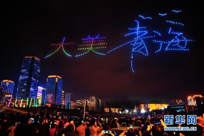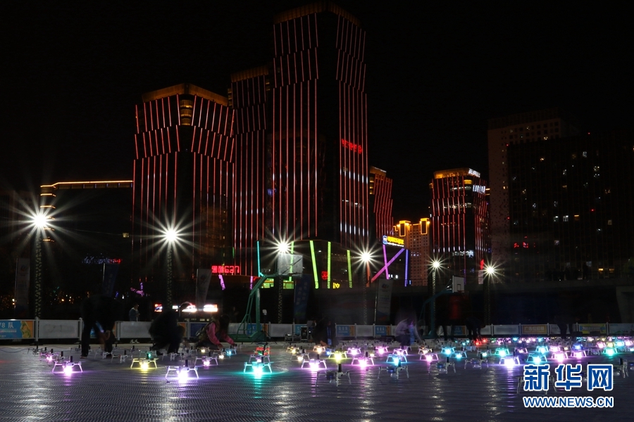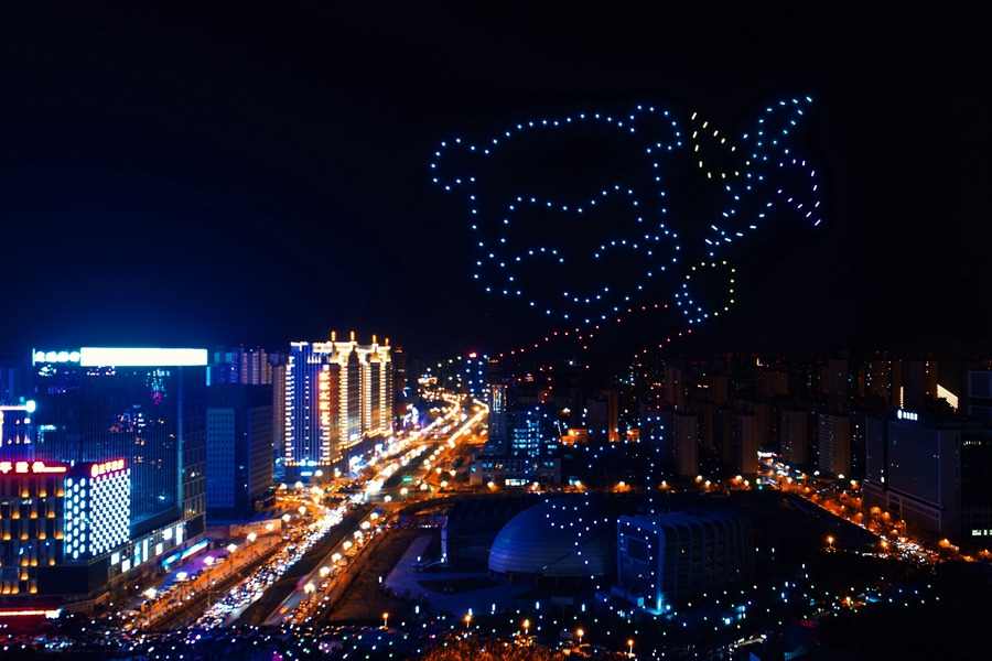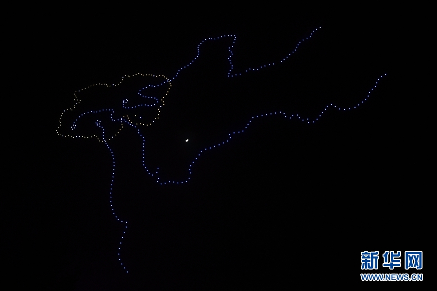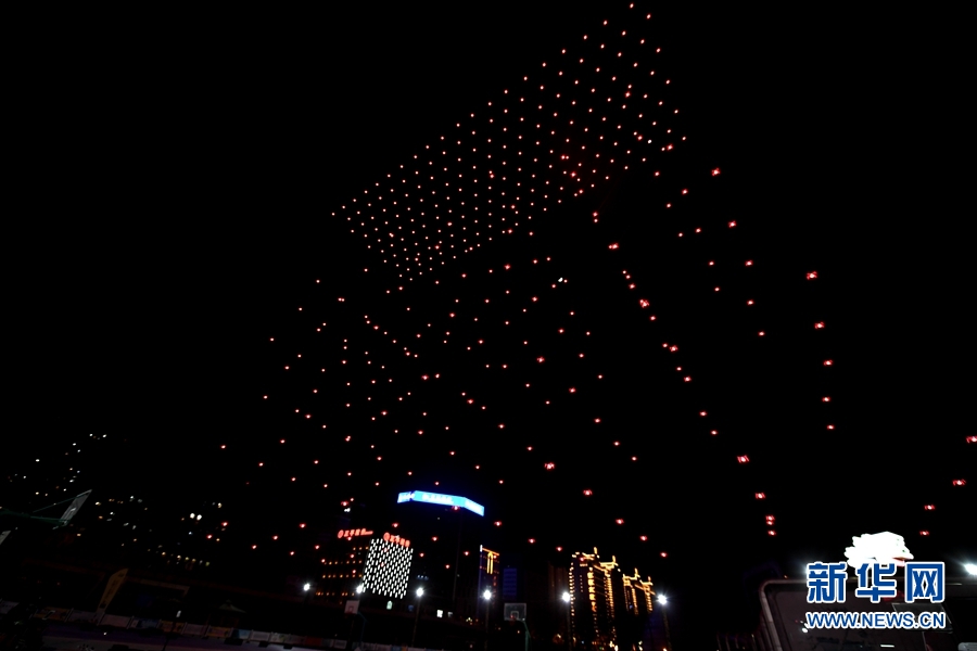 无人机群在空中摆出青海版图的造型
