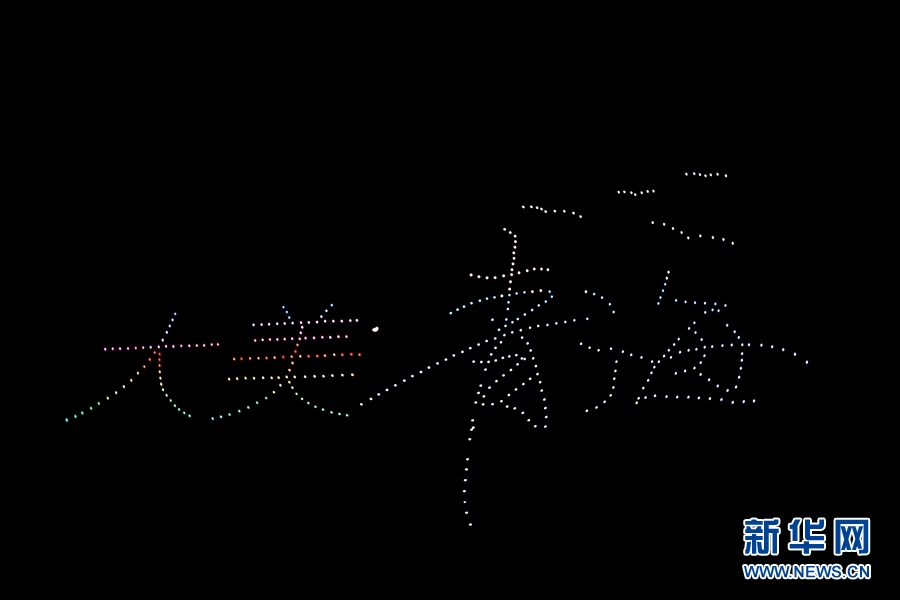 无人机群在空中摆出大美青海字样的造型