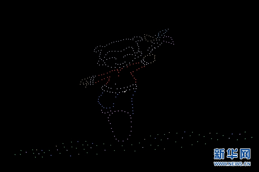 无人机群在空中摆出一位小女孩的造型