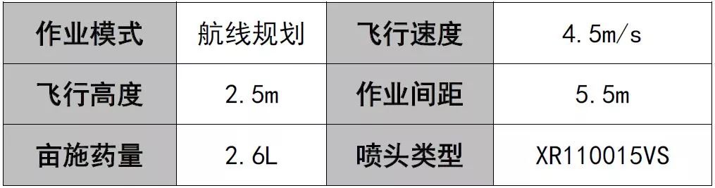 香蕉园地势平坦,地块规整,适合使用航线规划(全自主)作业。由于香蕉树较为高大,冠层比较厚,我们将作业模式设置成强沉降模式。为保证作业效果并尽量提高作业效率,亩用量设置为2.6L/亩,飞行速度设置成4.5m/s。