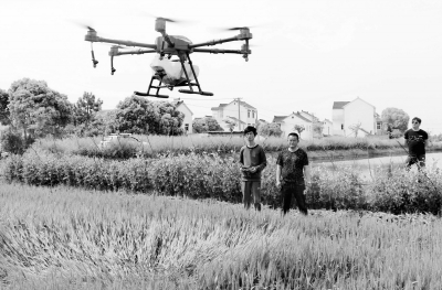 昨天,在桠溪街道兴旺社区官庄村麦田里,一台无人机正在对麦田喷药。眼下正是小麦抽穗扬花期,为确保小麦夏收丰产增效,当地推广无人机实施病虫防治,喷药效率是人工施药的10多倍。
