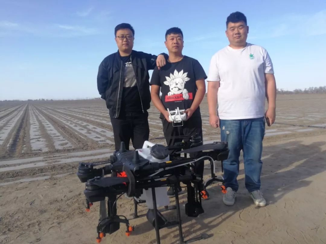 28岁的王鹏、姜金玉和29岁的麻俊辉是石河子人,三个人是发小,都是兵团三代。大学毕业在外面打拼几年后,他们看到了兵团现代农业的大发展,于是一拍即合决定创业。小哥儿仨凑了20万块钱,买了三台可进行飞防作业的植保无人机。姜金玉说,拥抱科技是时代发展的主流,他们必须跟上时代的节奏。