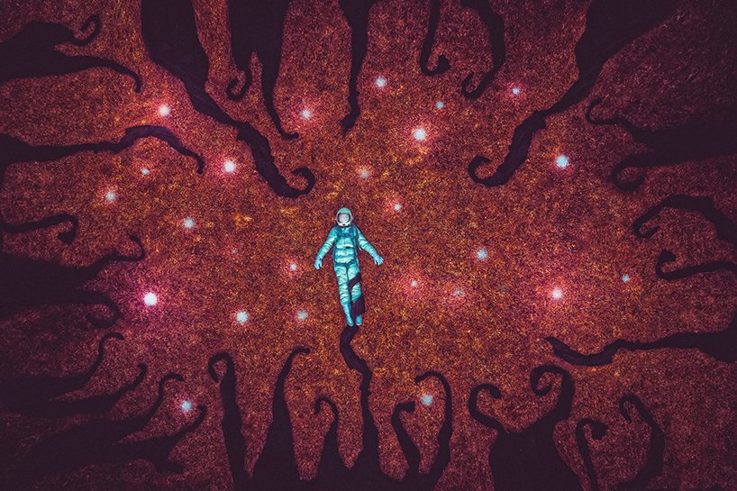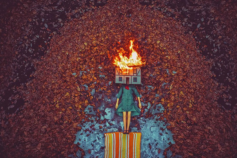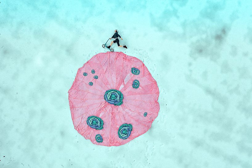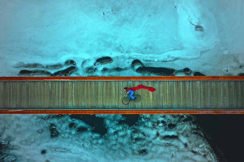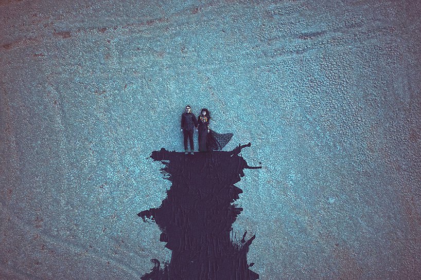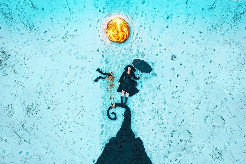 无人机摄影常常应用于风景摄影和大场景摄像,而这也是Karen的第一次无人机摄影尝试。奇异的布景,鲜明的色彩碰撞,令人惊叹的细节,以及爱丽丝梦游仙境般的叙述,都让她的作品充满了超现实主义色彩。