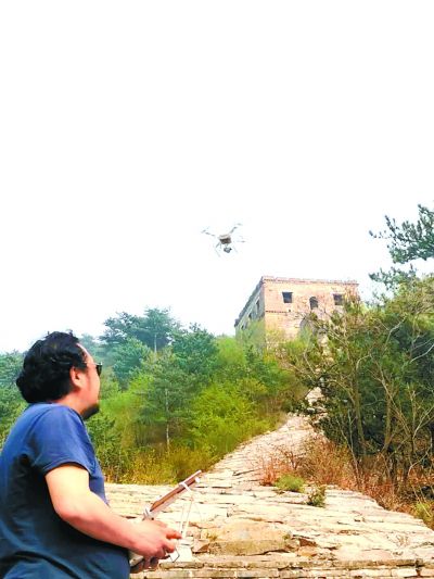 赵鹏使用无人机对长城进行飞行勘察。