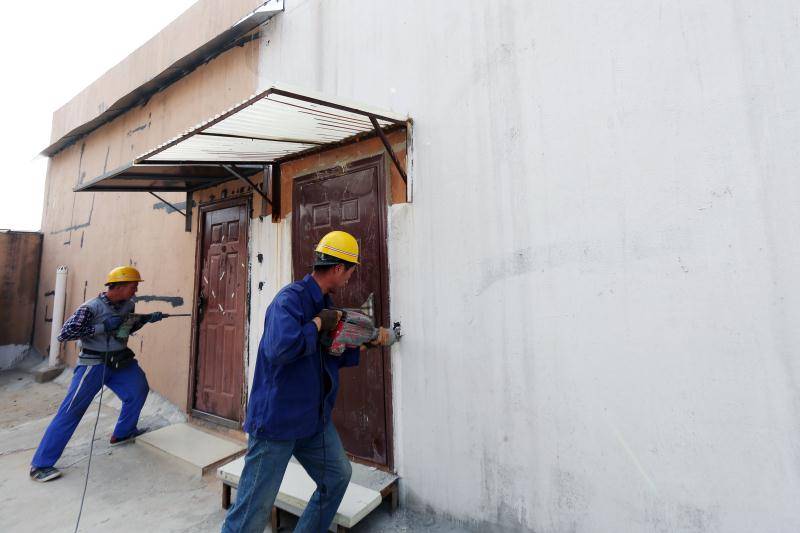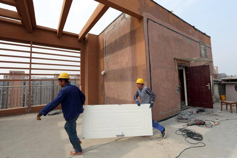 此次拆除的违建房就位于15号居民楼的顶楼,单单从楼体外观很难辨认,只有实际爬上楼顶才会发现这是一处非常隐蔽的违建房。业主利用楼顶原有的造型框架,搭建起了一处封闭式的两层复式“小别墅”。屋内的客厅、厕所、厨房、卧室等一应俱全,墙体也被粉刷装饰一新,还安装了防盗门等,看上去和正规的房屋一样。然而,这些违法建筑虽然方便了业主个人,但实际上存在很大的安全隐患。位于楼顶的违建房不仅损害业主们的公共利益,而且还会破坏整栋楼的楼体结构,导致防水层破损漏雨,房屋的承重、结构均会受到不同程度的影响。不同于一般的违法建筑,高层房屋楼顶的违建房拆除难度极大,据兴隆路街道综合行政执法中队队长王勇介绍:“在高空施工,不能使用类似于挖掘机等大型拆除设备,只能采用小型切割机和人工敲击等方式,要在充分保证安全的前提下进行依法拆除,施工难度很大。”在拆除之前,兴隆路街道行政执法中队多次修改了拆违方案,从而避免可能出现的安全问题,多次补充完善了拆除计划。在拆除现场,专业施工人员按照规范操作实施,在确保安全前提下强力推进拆除作业,最终彻底拆除近200余平方米违建房。