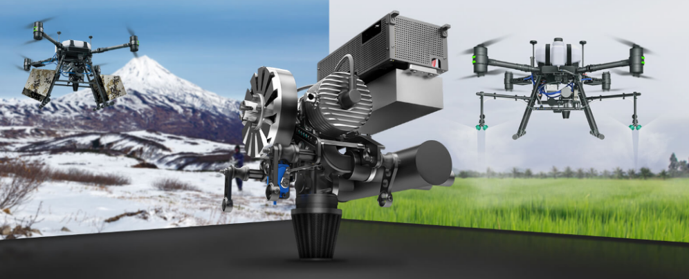 G120油电混合动力系统采用发电机一体化动力电源技术,有效的结合了油动和电动的优势。通过燃油发电不仅保留了燃油的高能量而且还保留了电动的以操控性。该系统最大输出功率可达7.4KW,有效负载能力可达15-24kg。无人机可搭载这款动力系统用于无人机植保作业、无人机物流运输、长航时巡检任务、高海拔巡逻等任务。