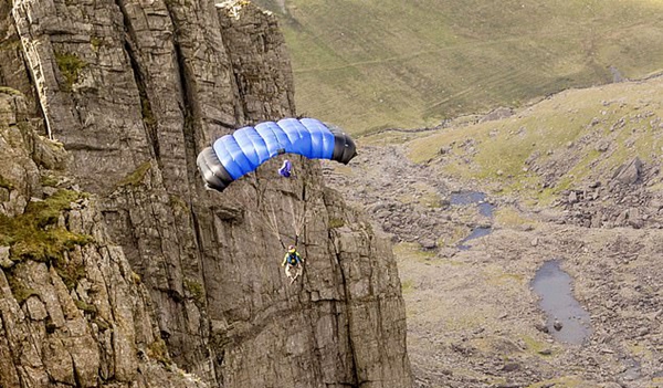 据英国《每日邮报》4月18日报道,近日,29岁的外国男子乔希?雅各布斯(Josh Jacobs)从英国威尔士的斯诺登山顶一跃而下,垂直降落高度达2500英尺(约762米)。其同伴戴夫?加拉赫(Dave Gallagher)用无人机拍摄了雅各布斯跳伞的全过程。
