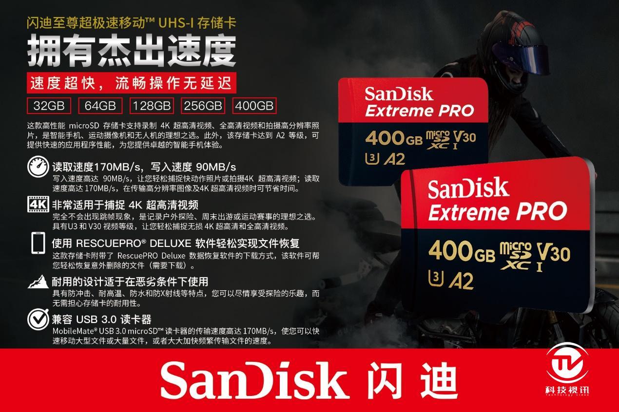 无人机与运动相机历来都以轻便的品质或小巧的体积实现灵活的拍摄记录,而microSD存储卡几乎是该系列产品的标配选择。闪迪至尊超极速移动UHS-I存储卡即是基于此用途而诞生的产品,其体积小巧的体积却具备170MB/s读取速度和90MB/s写入速度(速度因设备可能产生差异),拥有U3和V30视频等级,能够轻松的捕捉连续画面和拍摄4K超高清视频。