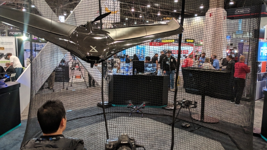 XDynamics 在 NAB 2019 中展出的固定翼无人机 Ranger 主要用于测绘,碳纤维外壳强度高而重量轻,对行业应用非常有利。