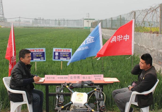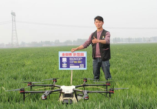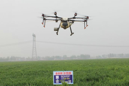 新乡获嘉县金帝博增产药示范田,无人机喷打金帝博增产药