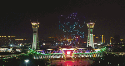 高巨创新无人机编队创意结合城市文化资源相结合,展现出城市夜游景色的独特性。