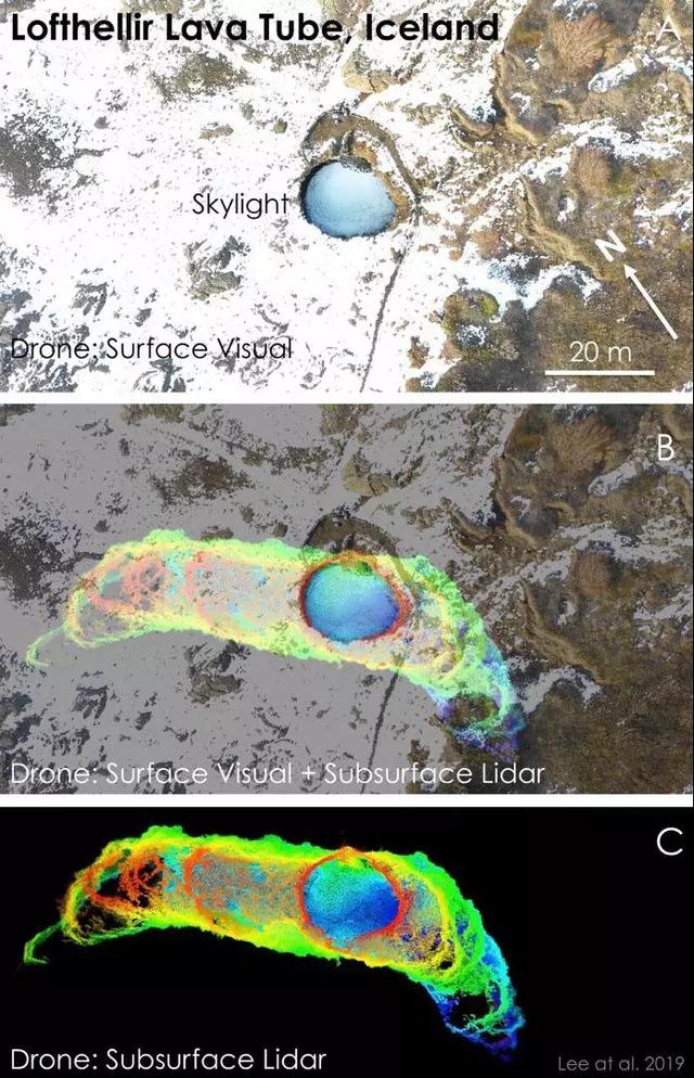这是人类第一次用无人机结合LiDAR激光雷达技术扫描冰洞或熔岩洞。霍希勒博士表示:“我们还有很长的一条路要走才能开发出一套可以在月球或火星上运行的系统,但这次探索含冰熔岩管是非常重要的第一步。”(小编注:本次任务的数据采集实际上发生在2018年10月11日。早在 2017年12月澳洲的一家名为Emesent的公司已经成功在干燥的矿洞里用无人机结合LiDAR技术进行探勘。但矿洞属于人造洞穴,较为平整,而本次任务是天然洞穴且为含冰环境,勘探难度较高,用到的技术也不一样。)