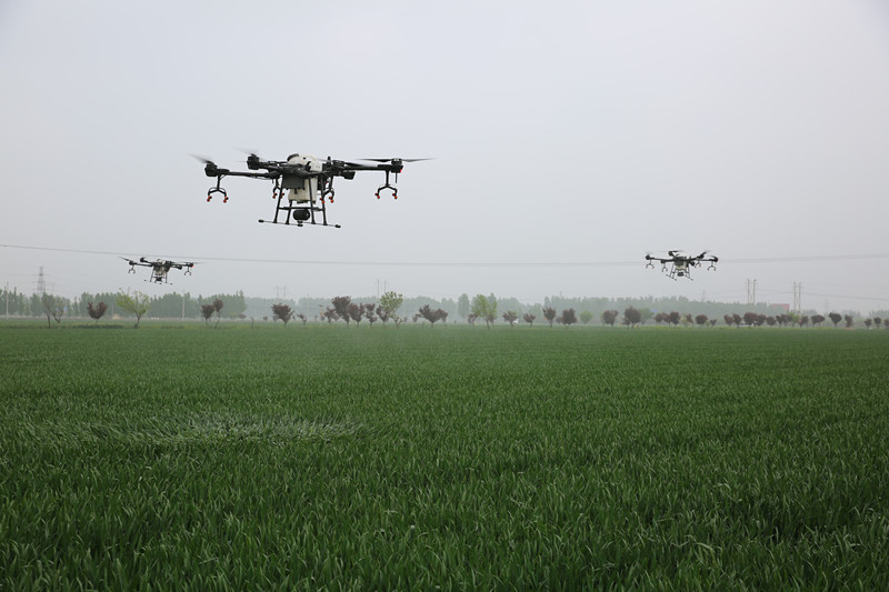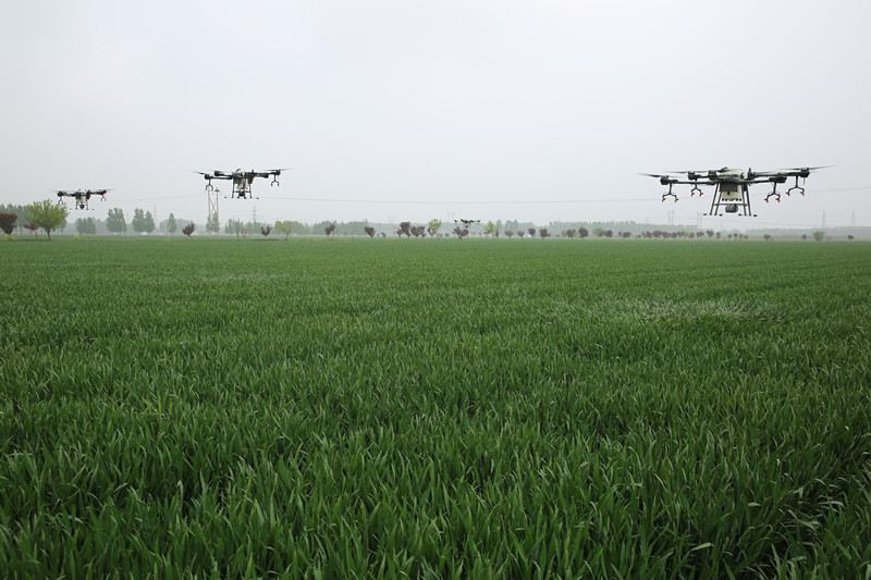 4月23日,在石墙镇车路口南坡麦田上空,随着无人机快速轰鸣而过,药物均匀地喷洒到小麦叶面上,高效的飞防作业让在场的群众无不点赞。当日,石墙镇2万亩小麦无人机飞防活动正式启动。20余架旋翼式植保飞行器分别在10多个村的麦田里飞防。