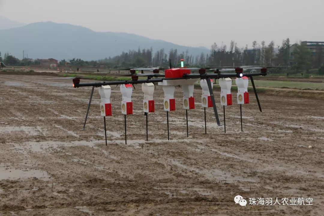 在2019年3月29日春耕期间,珠海羽人应邀到湖北江夏法泗镇现场示范田,用水稻精量直播无人机做精量直播。