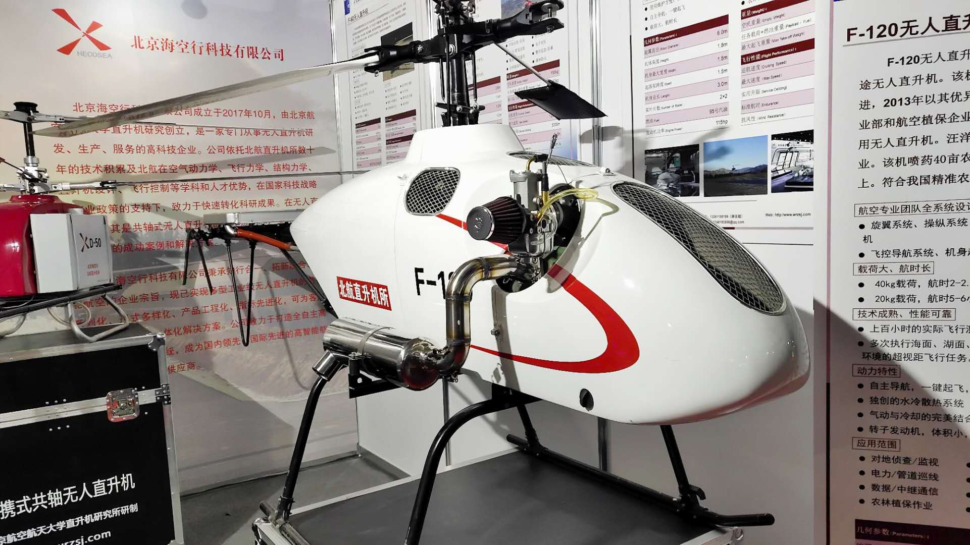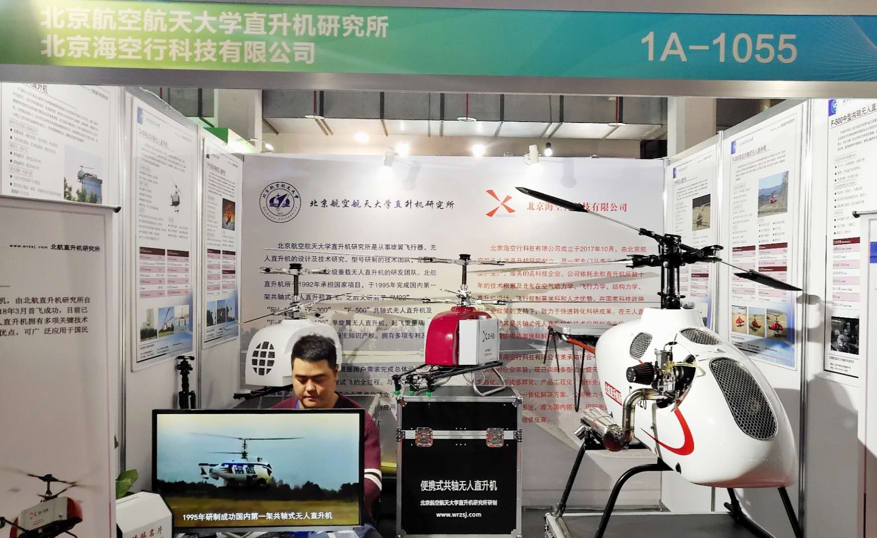 北京海空行科技有限公司成立于2017年,在国家科技战略和产业政策的支持下,由北京航空航天大学直升机研究所创立,是专业从事无人直升机研发、生产、销售、服务的高科技企业。这次他们带来的是D-50共轴双桨无人机和F-120无人直升机。其中F-120是一款可载重40kg续航2-2.5小时的油动型直升机,而D-50是一款小巧便携但负载能力有30kg的工业级无人机还能当植保机使用,这不得不佩服咱研究所的研发人员过硬的本领。