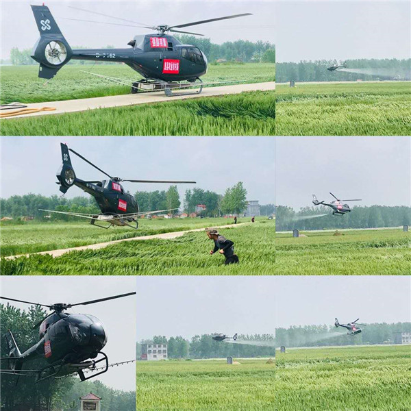 由于小麦赤霉病防控窗口期时间短,息县采取特事特办,应急采购防控农药67吨,应急招标专业化机防队,共出动施药机械455架,其中直升机5架,无人机450架,7支专业化机防队在全县同时开展作业。