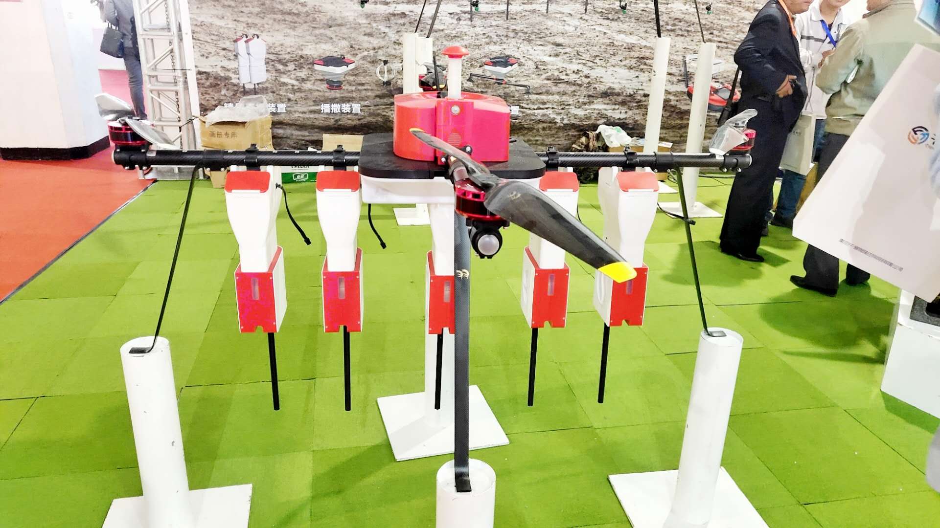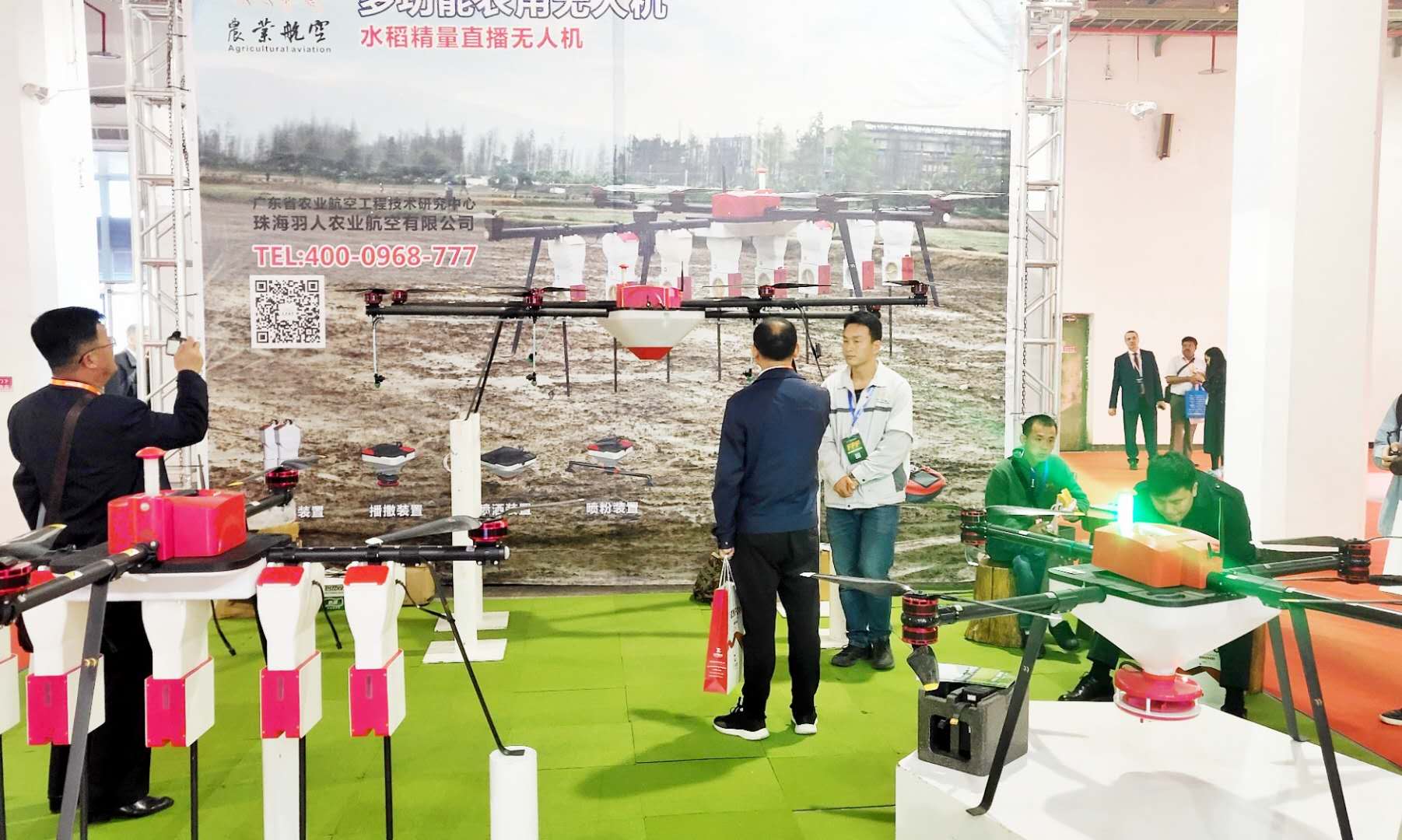 4月27-29日,第十届中国国际现代农业博览会(CIMAE 2019)在北京·中国国际展览中心召开。本届博览会以“科技驱动、创新发展”为主题,设立现代农业成就展区、智慧农业/精准农业展区、农业航空展区、种子苗木展区、设施农业展区、农药及化肥展区六大展示专区。珠海羽人在本次展会中携带了3款不同领域作业的植保无人机,分别是。20L大载荷的植保机、用于颗粒肥播散的无人机以及可以播种的播种无人机。